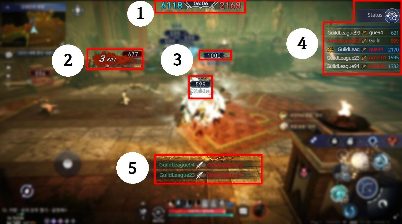 - Guild League Skirmish lasts for 7 minutes, and the guild with a higher score at the end is declared the winner.