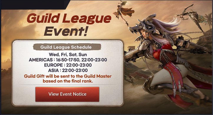 - 10 guild members can form a party during the scheduled time and participate in Guild League Skirmish matches.