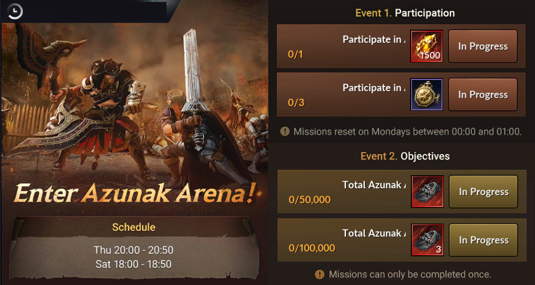Participate in Azunak Arena x3 | Clockwork x1 |