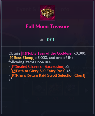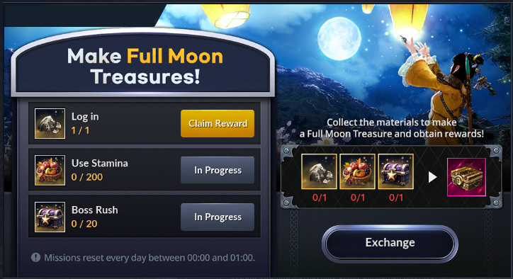 - Collect all 3 materials to exchange them for Full Moon Treasure x1.