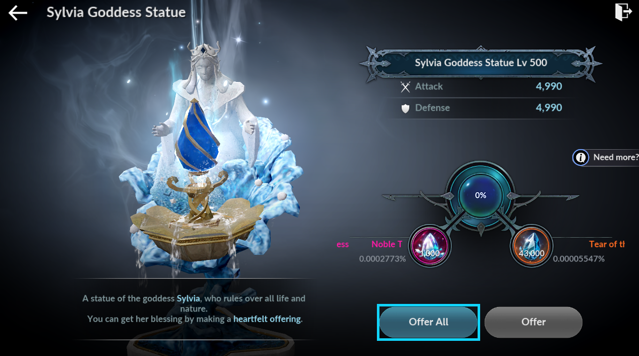 ㆍ You can now offer all Noble Tears of the Goddess and Tears of the Goddess in possession at once using the [Offer All] button.