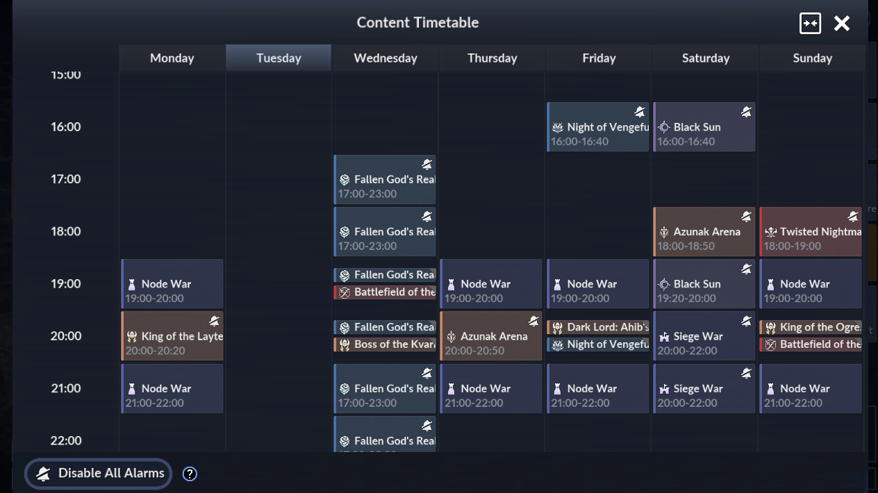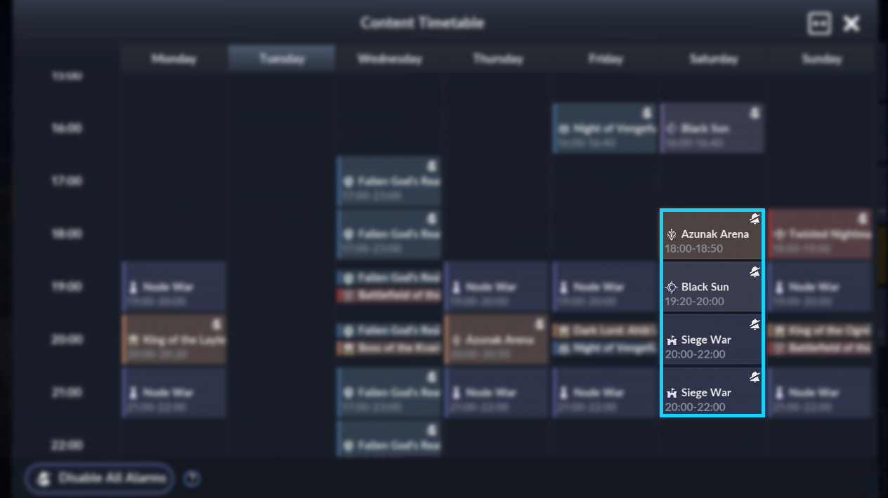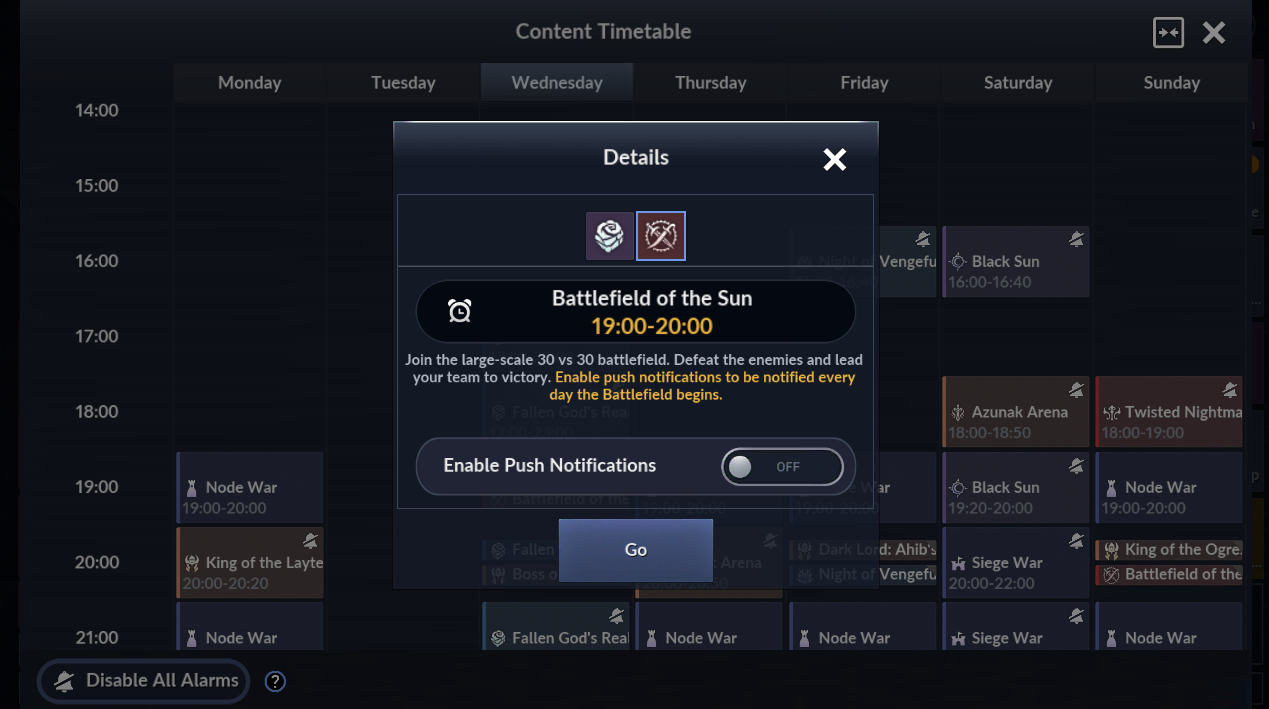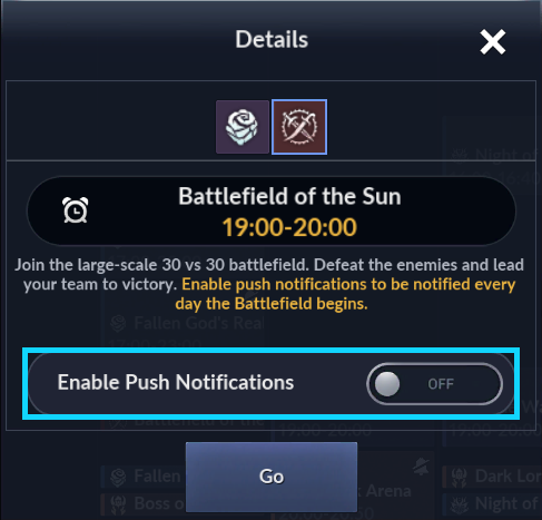 ※ Individual notifications can be set for each session of Night of Vengeful Souls and Black Sun.