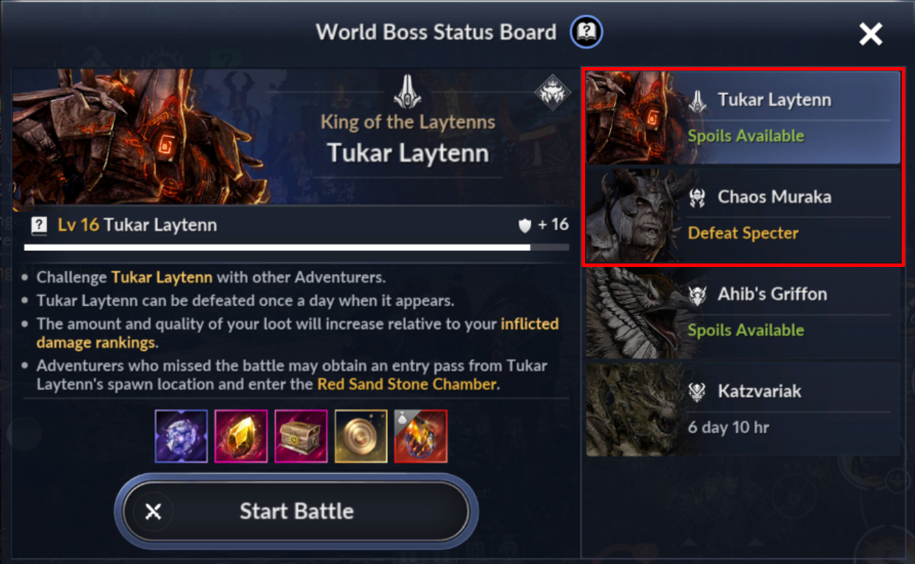 ▶ Spoils of World Bosses Available / Specter Battle Available