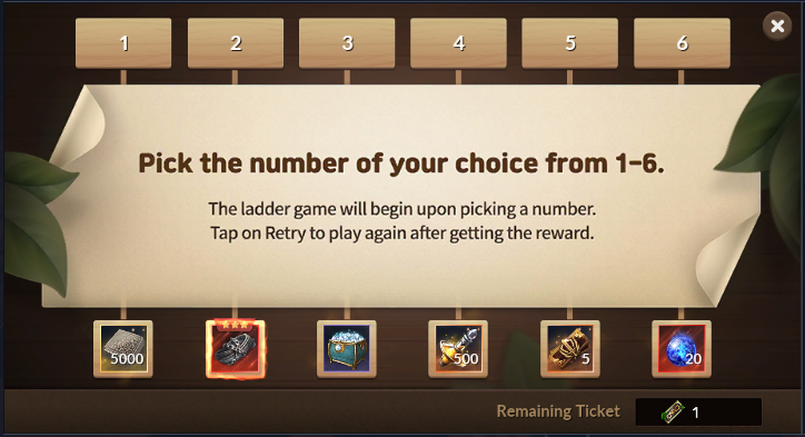 2) Tap [Play], choose a number between 1 and 6, and spend one ticket to begin the ladder game.