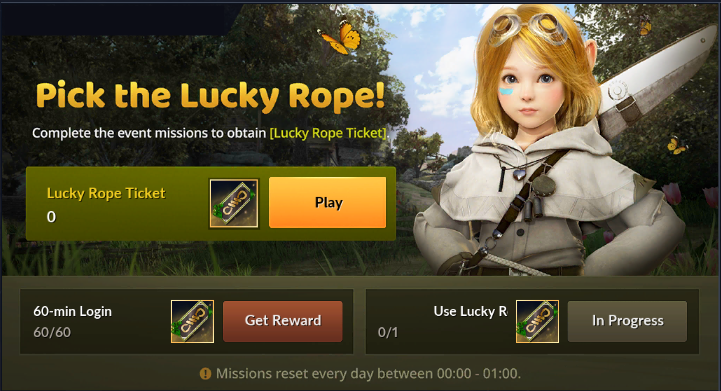| 60-min Login | Lucky Rope Ticket x1 |