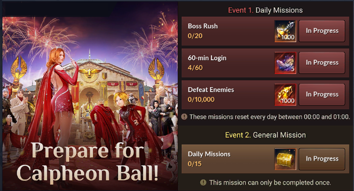 Complete the missions prepared in celebration of the Calpheon Ball 2025 every day and obtain rewards!