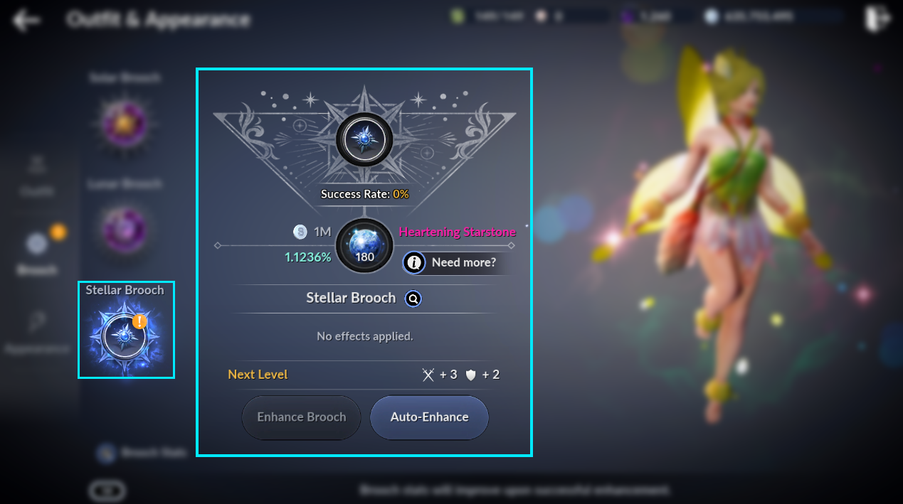 - Stellar Brooch can be upgraded to Eternal-grade using the item "Starbloom."