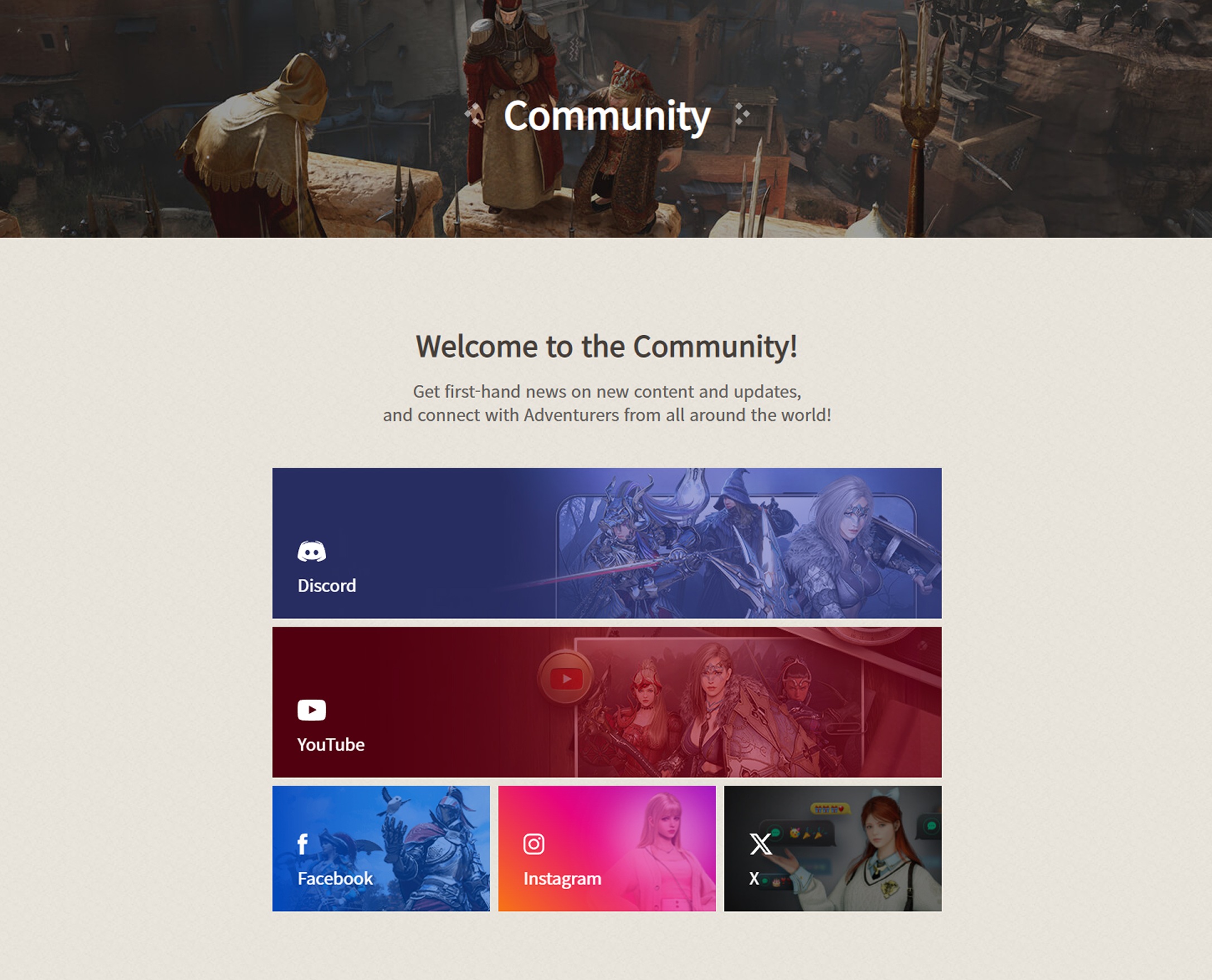 ・Various official channels, including the official Discord server and the YouTube channel, are available at a glance.