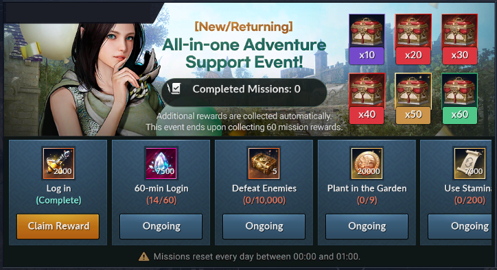 | Daily Missions x50 | All-in-one Camp Growth Chest x1 |