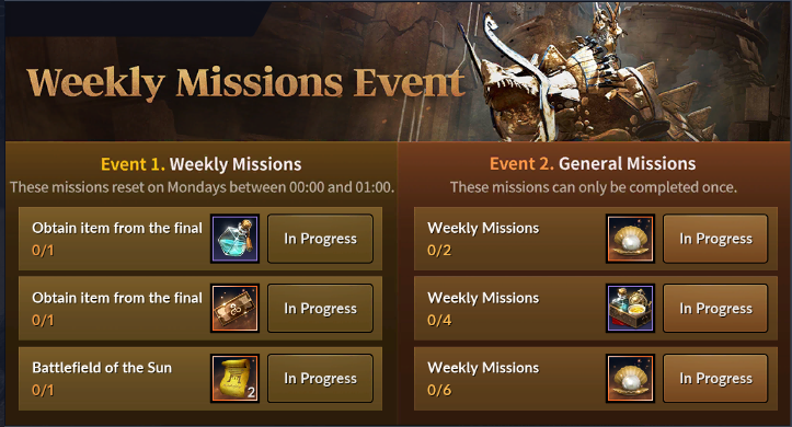 ※ Missions reset on Mondays between 00:00 and 01:00.