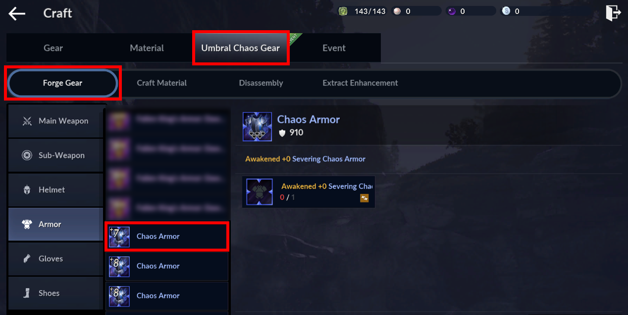 ㆍ+0 Severing gear can now be converted back to ordinary gear at [Menu] - [Craft] - [Umbral Chaos Gear] - [Forge Gear].