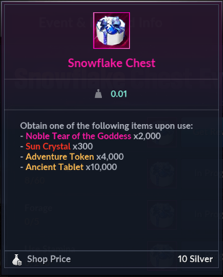 | Log in | Snowflake Chest x1 |