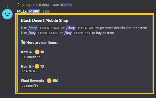※ Please note that you can only use the "/buy" command once per quiz!
