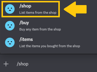 Enter the command "/shop" in the [#event-command] channel