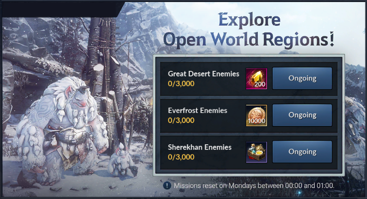 ※ Missions reset on Mondays between 00:00 and 01:00.