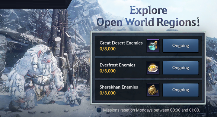 ※ Missions reset on Mondays between 00:00 and 01:00.