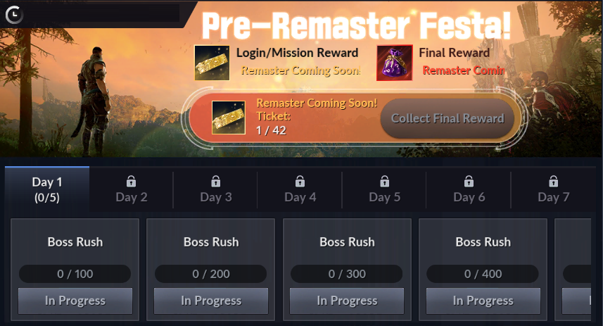 - A total of 42 Remaster Coming Soon! Tickets can be obtained from logging in and completing missions. You need all 42 tickets to exchange the final reward: Remaster Coming Soon! Bundle.