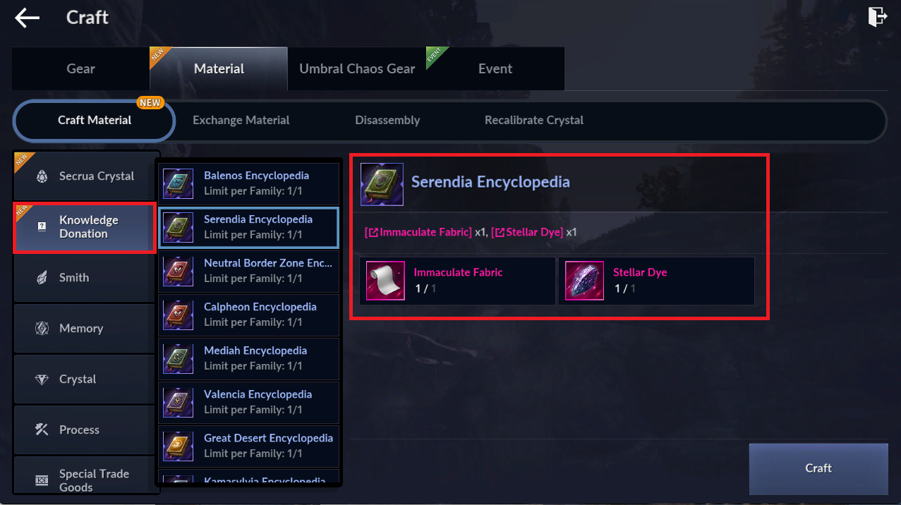 Then, I proceeded to [Craft] - [Material] - [Craft Material] - [Knowledge Donation],