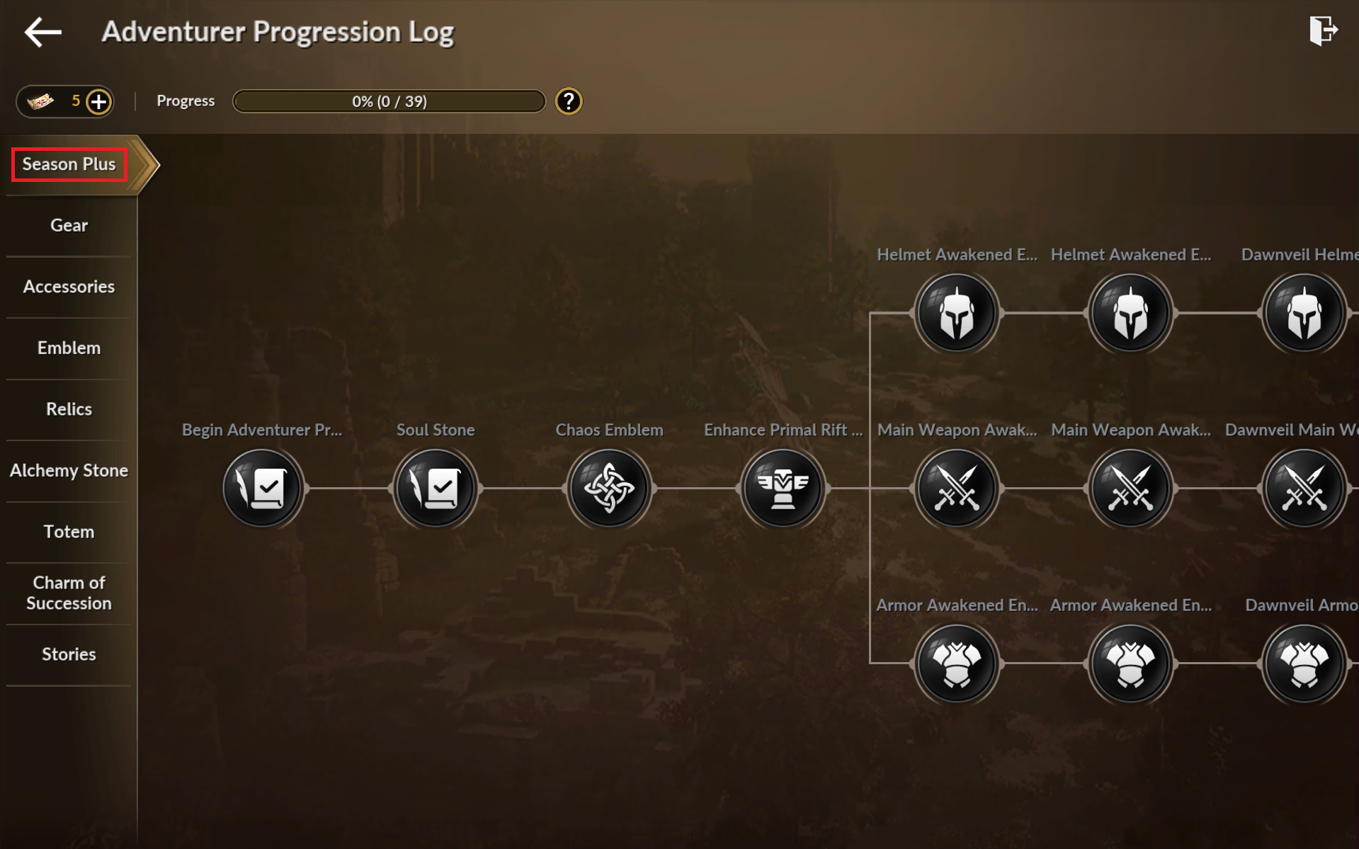 Instead, you'll find a new category within the Adventurer Progression Log: Season Plus.