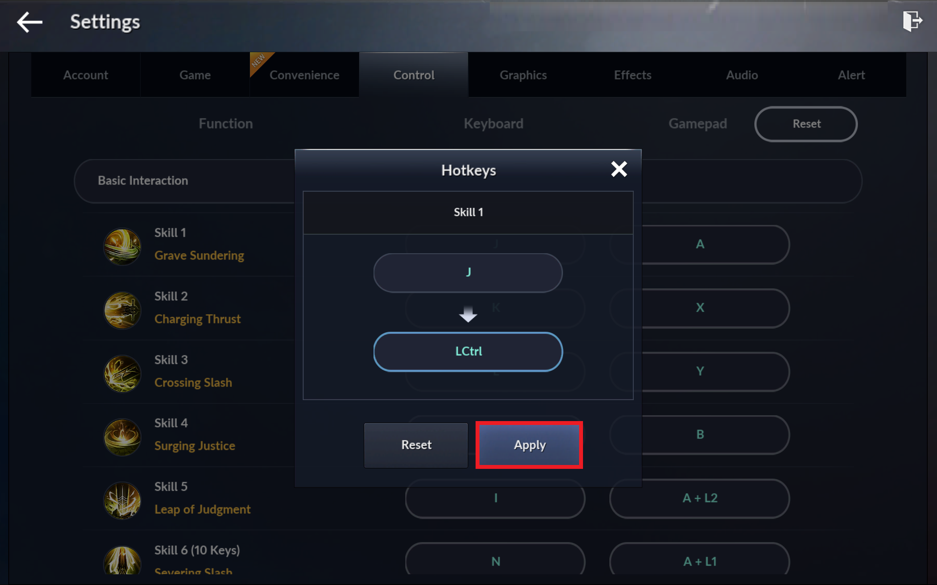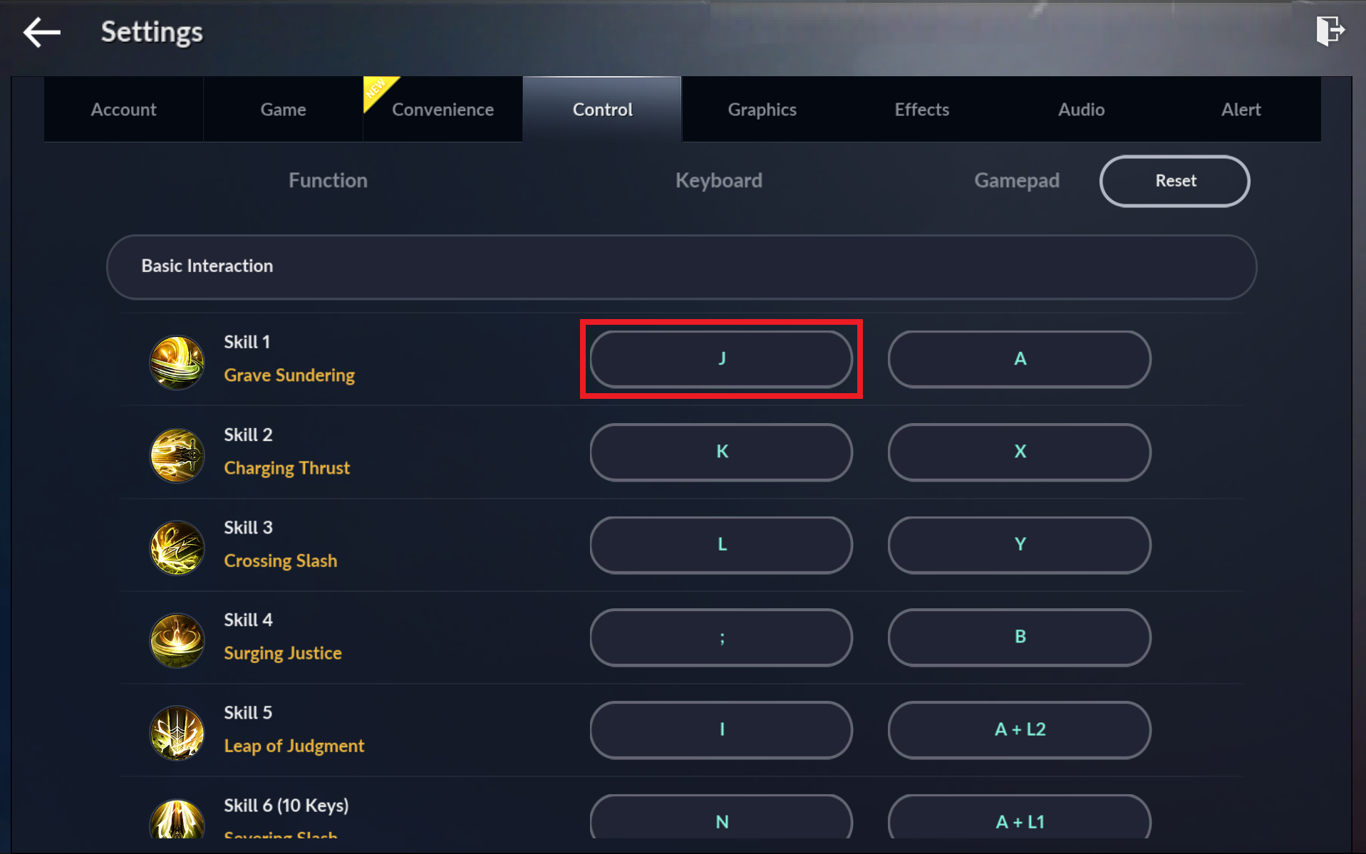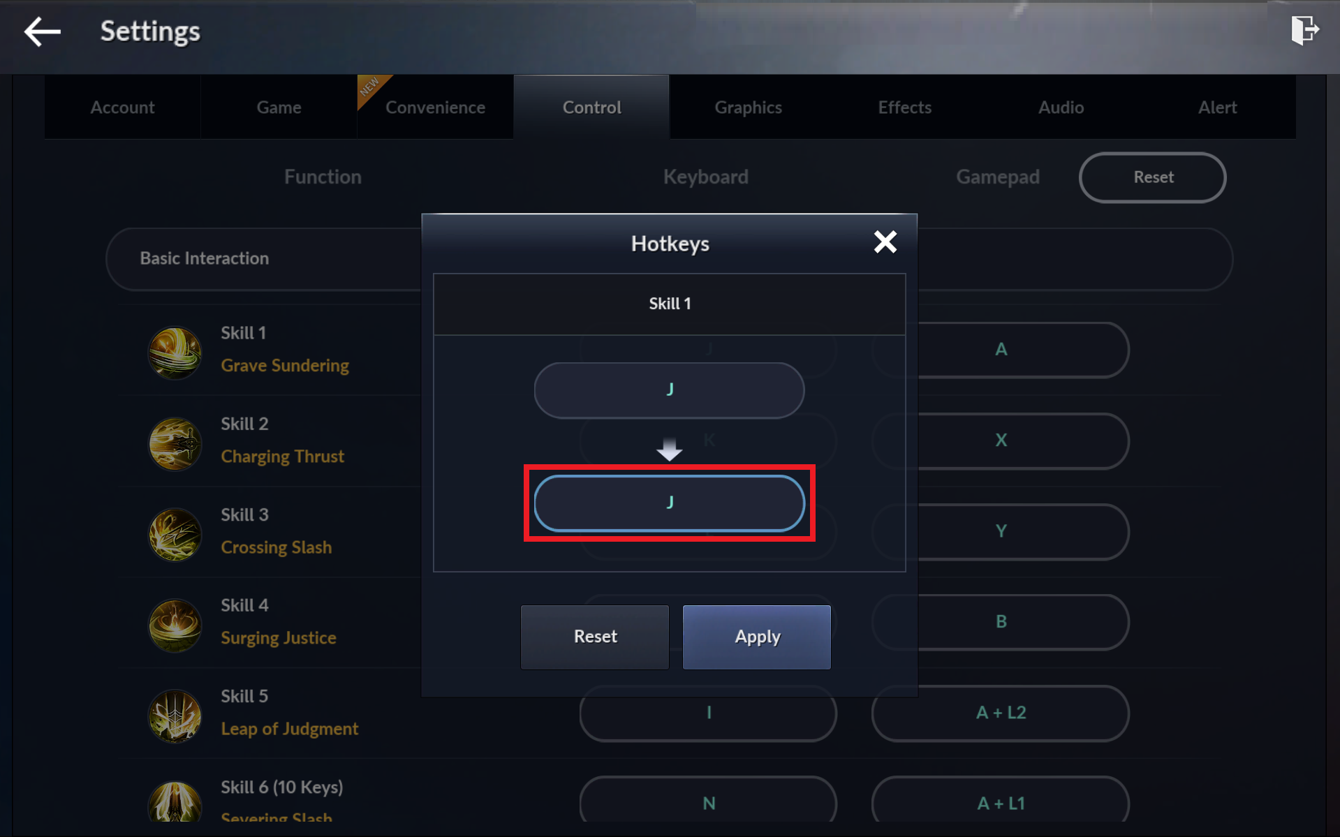 ㆍSelect [Reset] in the upper right corner to reset all key mappings to default.