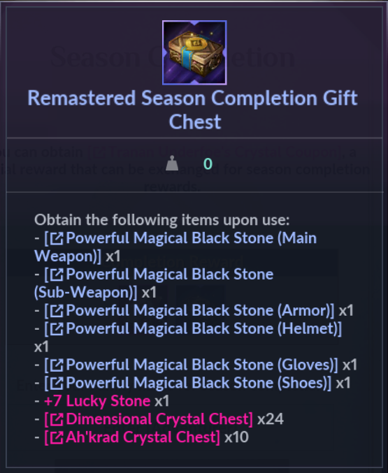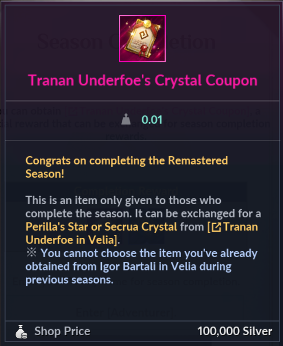 - Changed the Season Character Creation screen for returning Adventurers and added a [Back] button.