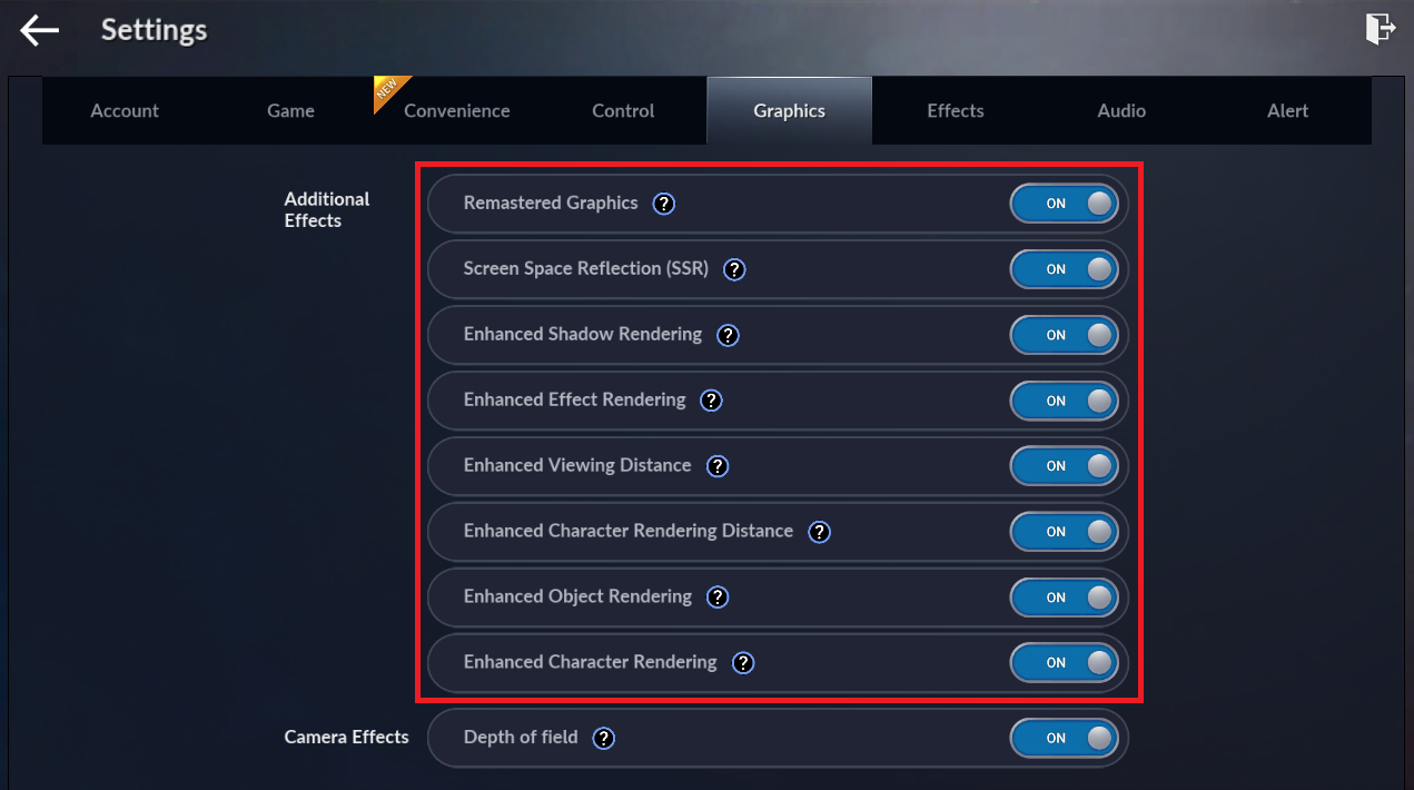 ㆍAdditional Effects → Remastered Graphics [ON]