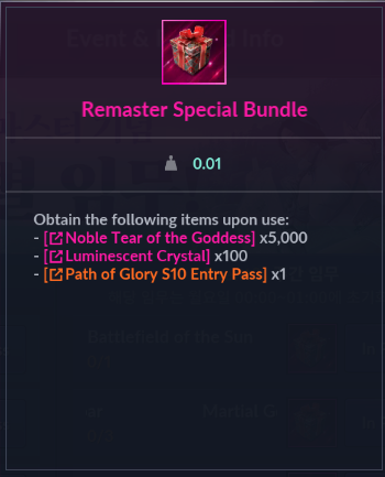 | Join the Battlefield of the Sun x1 | Remaster Special Bundle x1 |