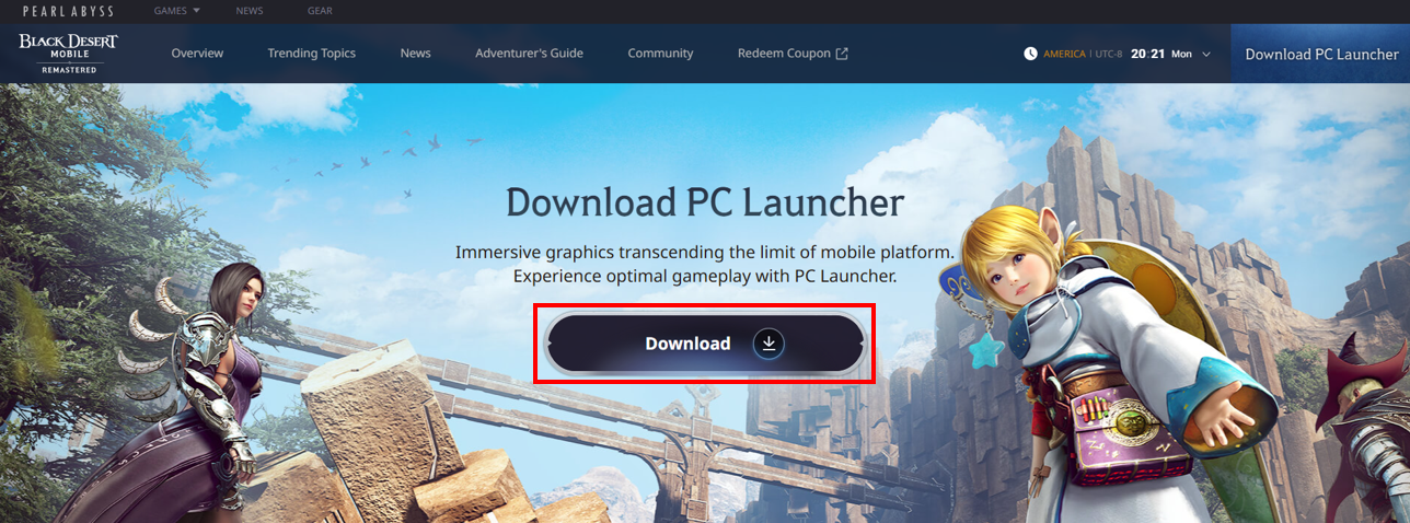 The Black Desert Mobile PC Launcher supports 64-bit Windows of version 10 or later.