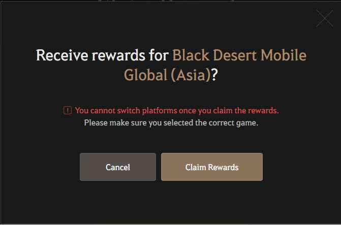 Check that your selected game and region match your account information, then click [Claim Rewards].
