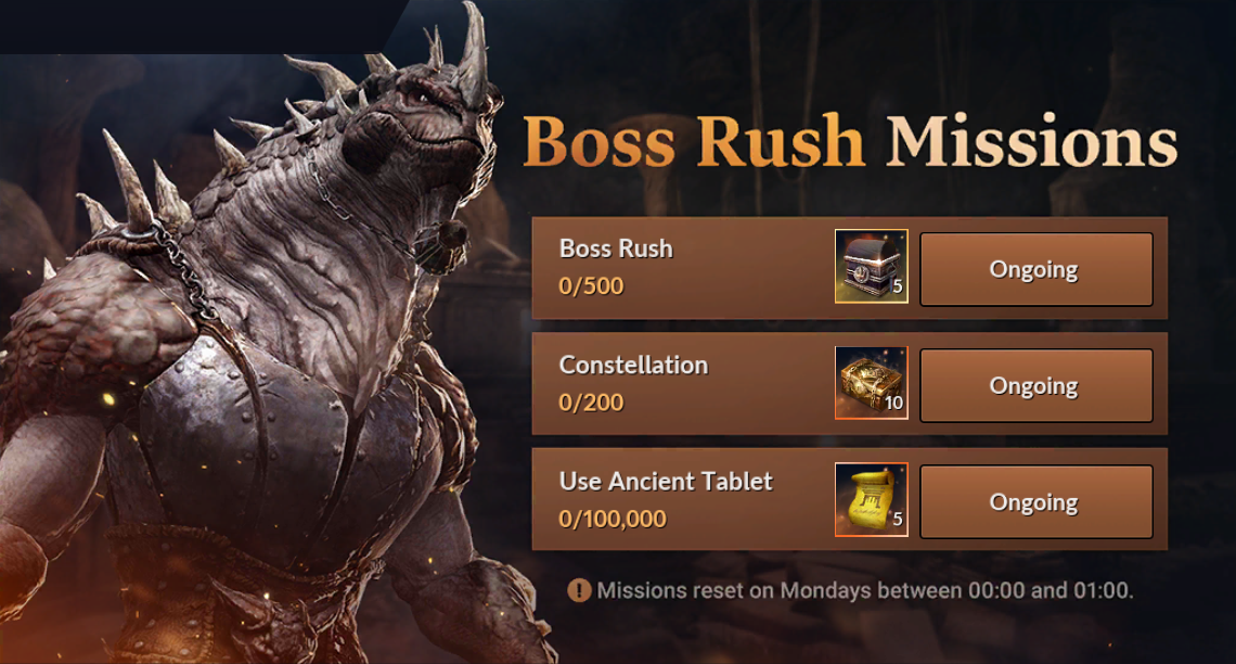 ※ Missions reset on Mondays between 00:00 and 01:00.