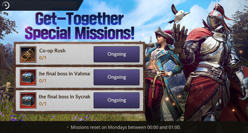 ※ Missions reset on Mondays between 00:00 and 01:00.