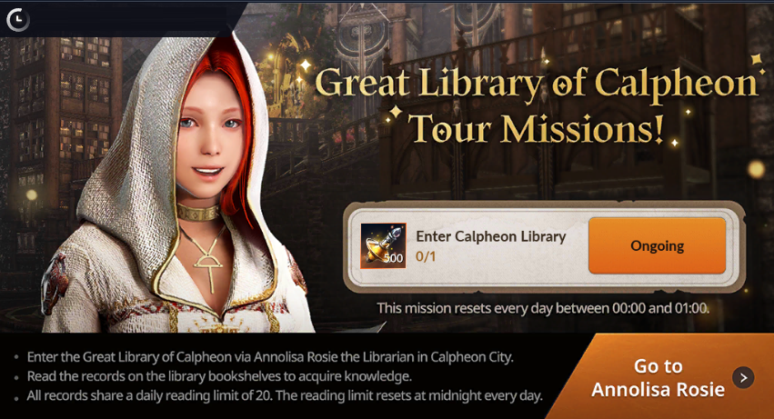 - Enter the Great Library of Calpheon to complete the mission and obtain rewards.