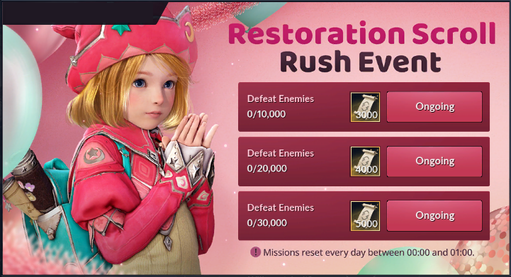 Defeat enemies every day to obtain Restoration Scrolls.