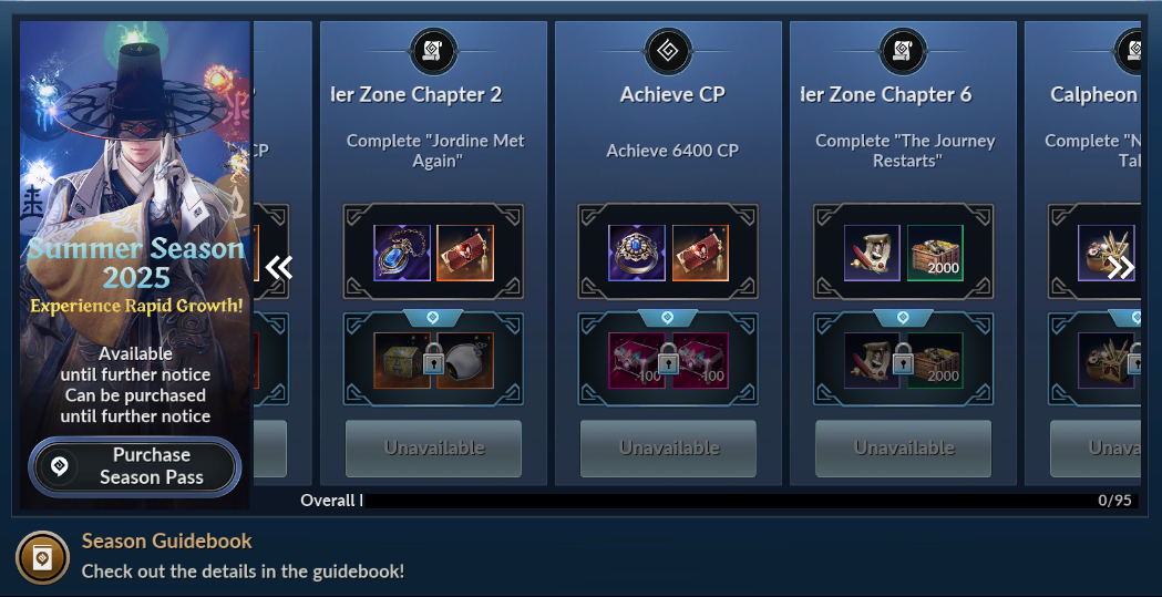 * Once the 2025 Summer Season concludes, the next season will require a character who has successfully completed the preceding season to participate.