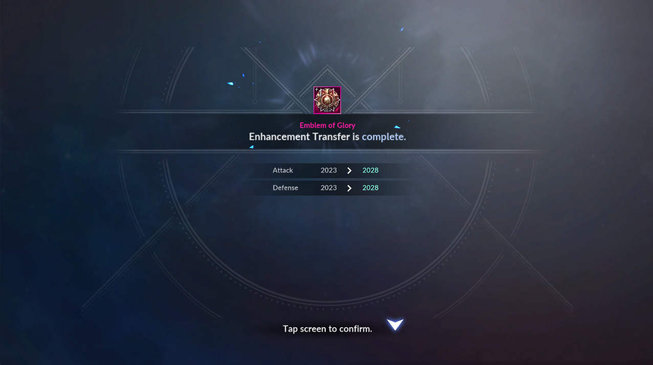 When you tap the Transfer button, the original Emblem will disappear, and the enhancement will be transferred!