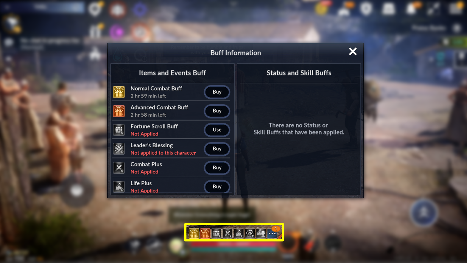 * Normal/Advanced Combat Buffs, Fortune Scroll Buffs, Leader's Blessing,