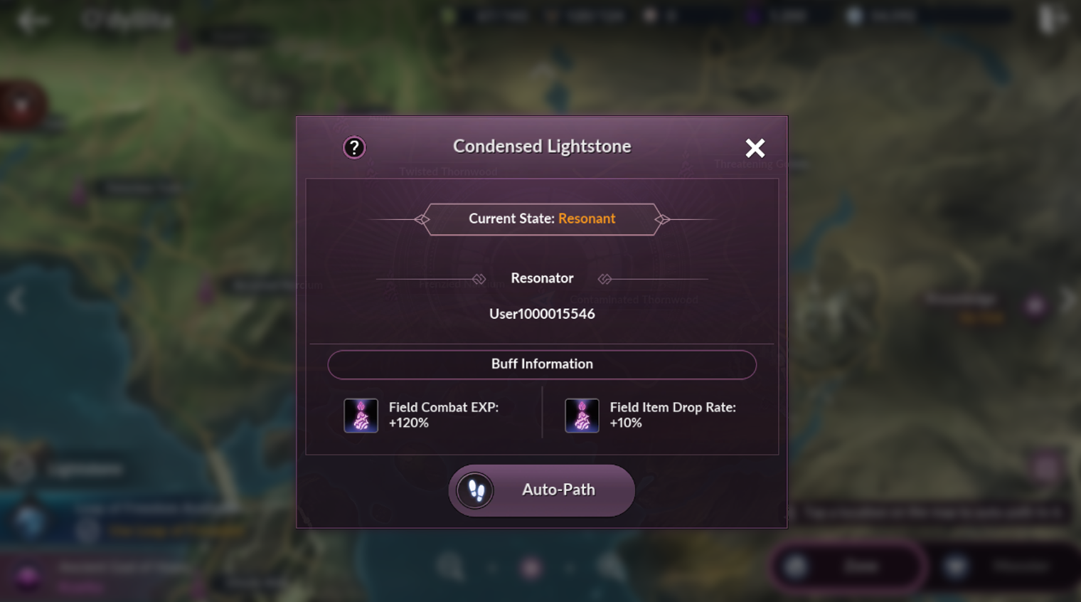 ㆍThe names of the Resonator and Successor are displayed on the top of the screen while within the Condensed Lightstone's range.