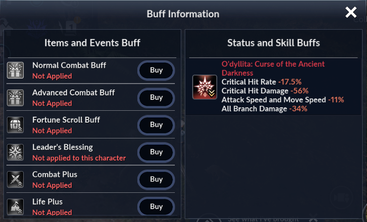 ㆍYou can check out the buff effects under [Buff Information]. |