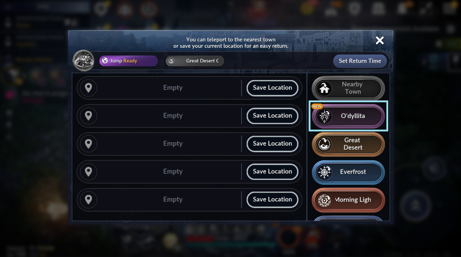 - Added O'dyllita to [Save Location] to instantly travel to O'dyllita.