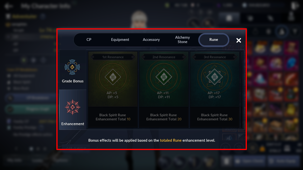This is a guide on how to enhance "Rune" from Black Spirit's Influence UI.